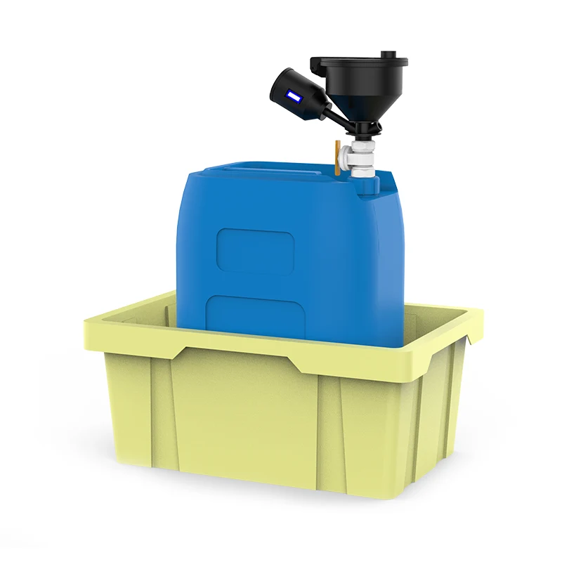 Sistem pengumpulan cairan limbah dilengkapi indikator level float standar lan klip grounding anti-statis.