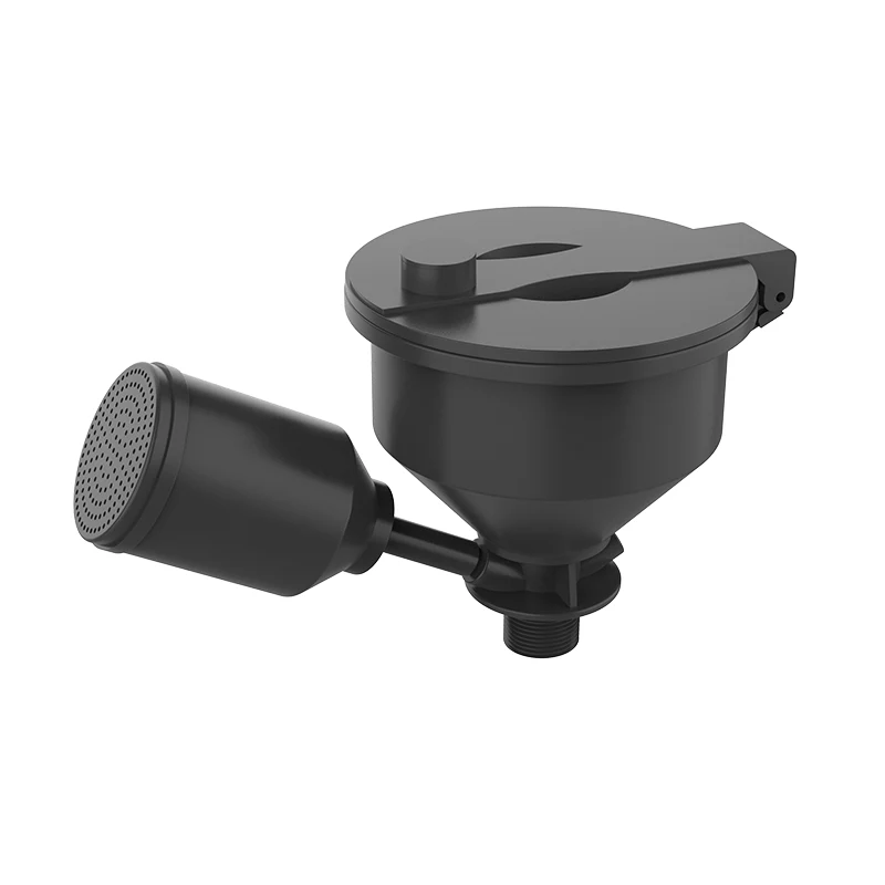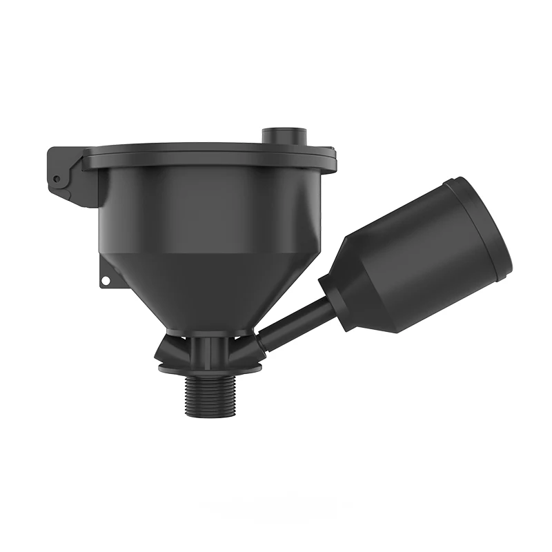Dhiameter jero corong yaiku 130mm lan diameter njaba yaiku 158mm. Iku nganggo desain tutup ndhuwur anti bocor. Bahan mentahan dicetak injeksi saka bahan anti-statis sing diimpor, dilengkapi tutup sealing lan desain corong panyaring cipratan. Katup bisa dipasang kanthi opsional ing ngisor corong kanggo njamin keamanan cairan sampah sing disegel. Tutup ndhuwur kalebu jinis counterweight. Nalika tekanan internal tekan 100Pa, tutup ndhuwur bakal mbukak kanthi otomatis kanggo ngeculake gas exhaust kanggo nyegah bledosan lan pembakaran spontan. Nalika tekanan kurang saka 50Pa, tutup bakal ditutup kanthi otomatis.